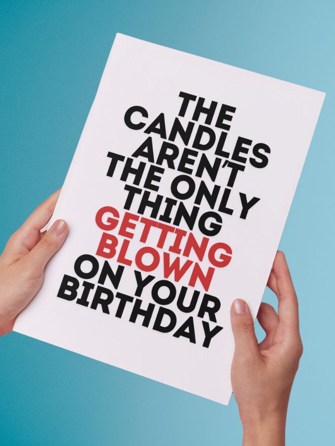 Card front text: The candles aren’t the only thing getting blown on your birthday.